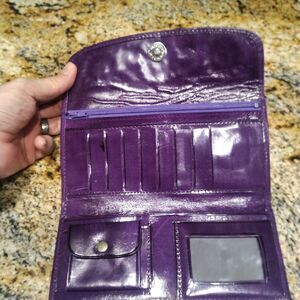 Mexican Hand Tooled Leather Trifold Clutch Wallet Clutch Floral Deep Purple