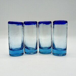 Mexican Handblown Blue Tequila Shot Glasses (4)