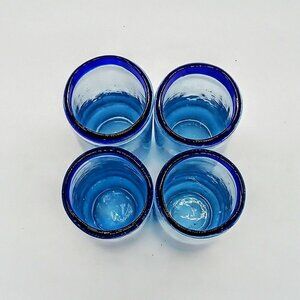Set of four (4) Mexican handblown blue tequila shot glasses.