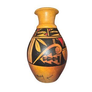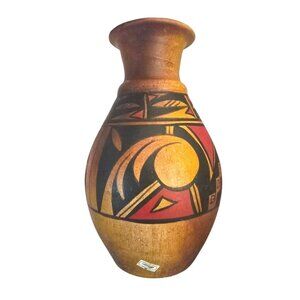 Mexican Handmade Painted Pottery Vase (Made in Mexico) in good condition. Beautiful piece to add to your home. Small spot of missing paint color on inside of opening. (shown in pics)