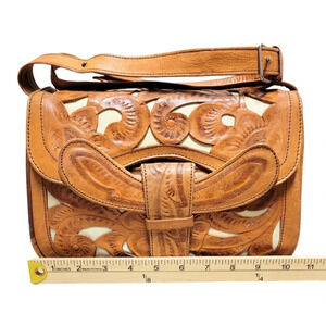 Mexican Handmade & Tooled Leather Shoulder Bag Tote Womens Vintage
