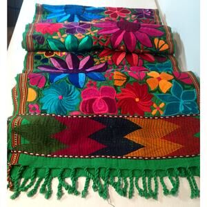Mexican Handmade Traditional Woven Embroidered Bright Floral Table Runner 96 X 17