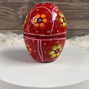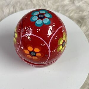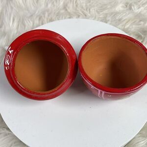 Mexican Handpainted Red Clay Trinket Box, Red with Flowers