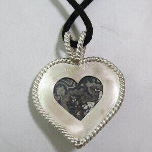 Mexican Lace Agate Cabochon Heart Shape Sterling Silver Pendant