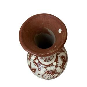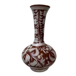 Mexican Pottery Bottleneck 9.5” Vase Floral Hand Painted Bohemian Signed R.C.