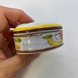 Mexican Pottery Look Heart Shaped Trinket Box w Lid and Floral Design
