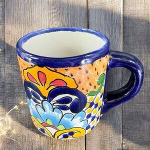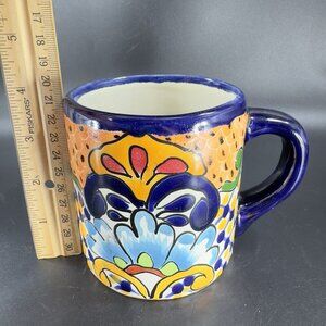 Mexican Pottery Talavera Hand Painted Coffee Mug Cup Folk Art Mug Hand Made VTG