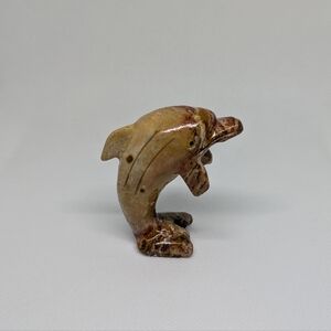 Mexican Soap Stone Genuine Crystal Dolphin Hand Carved Carving Statue