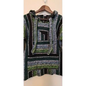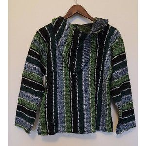 Mexican Southwest Baja Chunky Poncho Hoodie Hippie Festival Drug Rug Size Small