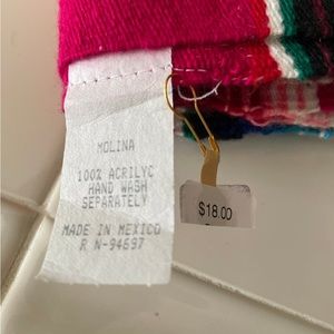 NWT Beautiful vibrant colors in this table runner with fringe at both ends. Measurements are 53”x22”. Can fold the width in half and make an 11” narrower runner, and also looks good. Great for a fiesta or Cinco de Mayo party! Let me know if you have questions.