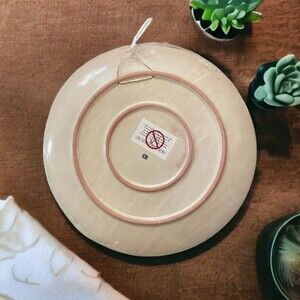 The condition is pre-owned, like new without chips or cracks. Hanged in my mom's breakfast room since early 90's. The colors are bright, with crisp details. The back of the pottery platter is pierced to hang on the wall. it has a stamp in the back where FDA required the statement for decoration purposes only when imported so it is not to be used in the oven or microwave but can display fruits as a centerpiece.