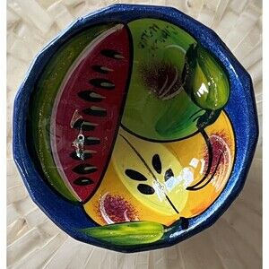 Mexican Terracotta Clay Painted Fruit Pottery Footed Salsa Bowl Trinket Dish New