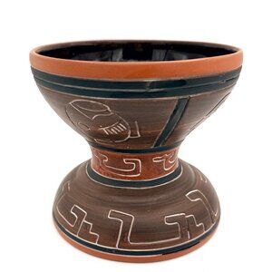 Mexican Terracotta Pottery Vase 6" • Carved Burnished Clay • Rustic Southwest