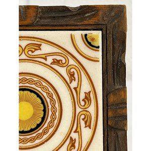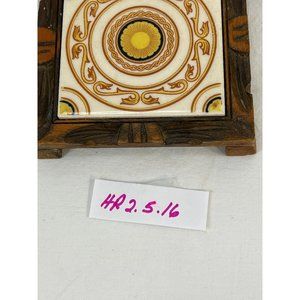 Mexican Tile Trivet Hand Carved Wood Frame With Feet 70s Plant Stand Wall Decor