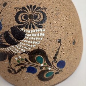 Beautiful Mexican Tonala pottery stoneware art vase with owl and flowers