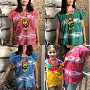 Mexican Tunic Striped Fringe Woven Boho Top Cover Up