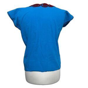 Mexican Turquoise Rose Embroidered V-Neck Handmade Artisan Top - Women M