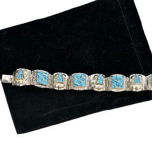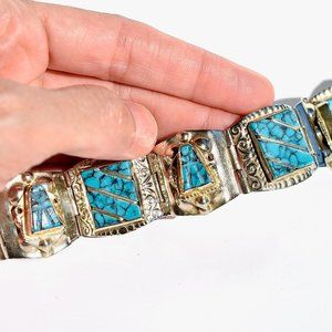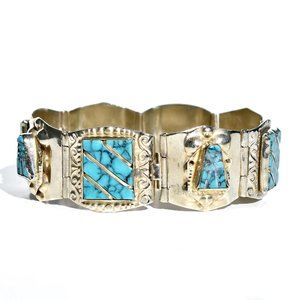 Mexican Vintage 60's Turquoise Links Panel Bracelet
