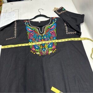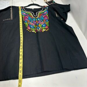 No stretchy fabric,Elegant black women's top featuring vibrant embroidery. Perfect for adding a pop of color to your wardrobe.