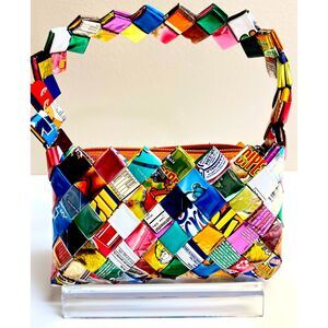 Mexican multi-colored recycled candy wrapper mini shoulder bag
