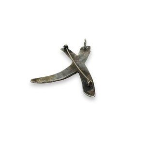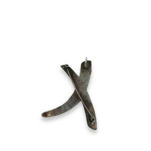 This unique Mexico 926 Sterling Silver brooch pendant is a unique piece of jewelry. The asymmetrical abstract X shape showcases the handmade craftsmanship with a touch of vintage charm. The brooch pendant is signed and made of 925 silver, with a weight of 12.12g and measuring 2 1/4" x 1 3/4". Expertly crafted in Mexico, this original piece is perfect for collectors of fine jewelry. Don't miss out on the opportunity to own this beautiful and timeless piece.