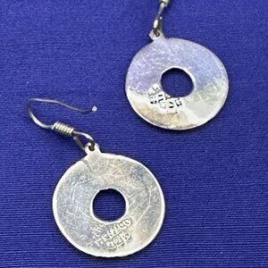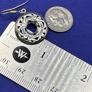Mexico .925 sterling silver round dangle earrings featuring lovely open work design on French “fishhooks” for pierced ears. Measures approx. 1 1/8” drop size. Marked “Mexico .925” on back of earrings. In very good pre-owned condition.
