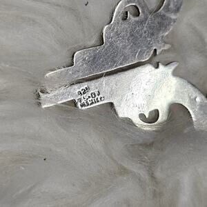 Silver Mexico 925 revolver earrings with shepherd hooks. These earrings measure 2" length by 1" wide. These earrings are perfect for the 2nd amendment supporters, NRA, Gun rights, Trump Supporters. These earrings measure 0.6 ounces in weight.