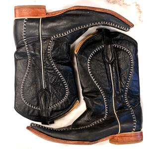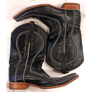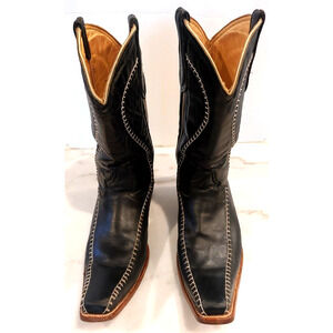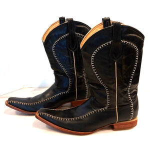 Mexico Black Stitched Men's Size 10 Mex 29 Western Leather Boots Pointed Toe
