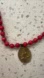 purchased in Mexico City at an artist shop This stunning necklace features vibrant red beads paired with a gold pendant, perfect for adding a touch of elegance to any outfit. 11 inches long hanging w pendant