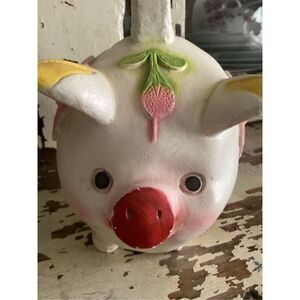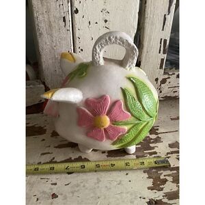 Mexico Folk Art Chalkwsre Plaster Piggy Bank Handmade 1970s Flowers