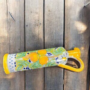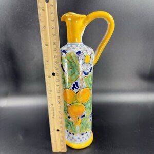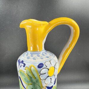 Mexico Hand Made Talavera Pottery La Corona Tlax Tall Pitcher Carafe Jug Painted