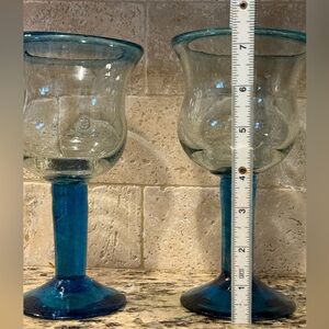 Mexico Hand-Blown Wine or Water Goblet Pair in Cobalt / Ocean Blue. Very Unique