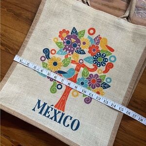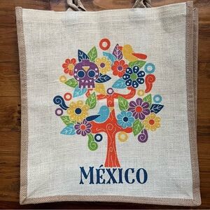 Beach, vacation, cruise, summer, spring, Mexico tote, Otomi bag, jute market bag, Día de los Muertos, folk art, colorful tote, reusable bag, tree of life, floral tote, boho style, handmade look, artisan style, pool