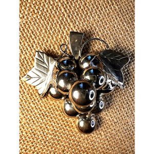 This grape cluster with leaves is a stunning pin pendant brooch. Sterling Silver, marked, from Mexico. This is a beautiful vintage classic jewelry piece that is timeless.