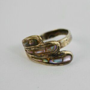 Mexico Sterling E2 925 Silver Abalone Shell Ring Adjustable