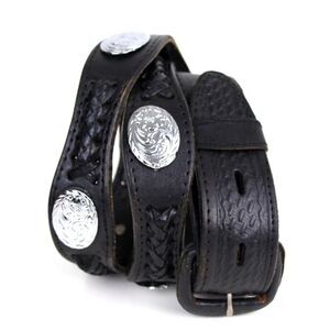 TOOLED BLACK GENUINE LEATHER CASUAL DRESS CONCHO BELT