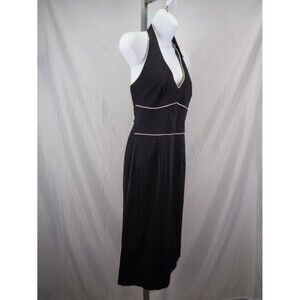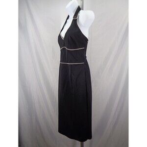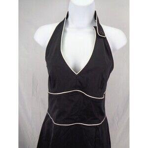 Mexx Black Halter Dress Size 6 Button Neck Ivory Trim New