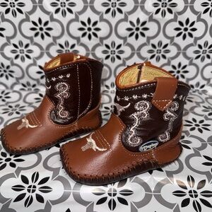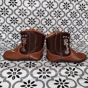 Meylan Baby unisex brown and tan leather western cowboy boots 6-9 months