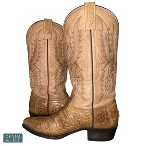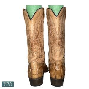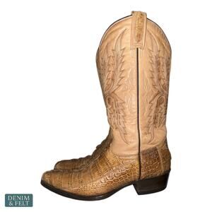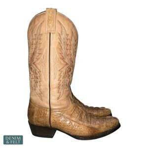 Mezcalero Men’s Tan Exotic Leather Western Cowboy Boots Full Grain Handmade 8.5