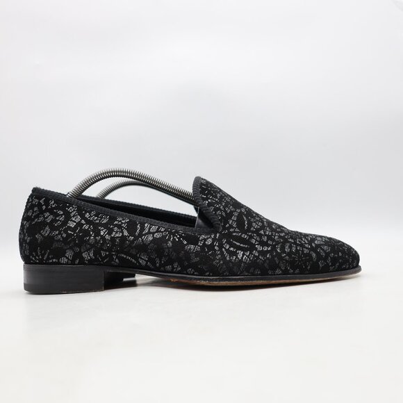 Mezlan Black Silver Shoes Men's US Size 10 Slip on Dress Shoes Floral Spain