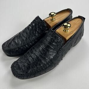 Mezlan Miami Ostrich Skin Black Slip On Loafer Shoes Need New Heels Size 10
