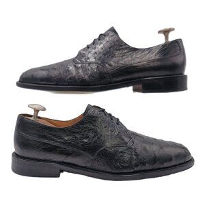 Mezlan Platinum Exotic Full Quill Ostrich Dress Shoes Men's 11.5M Black Oxfords
