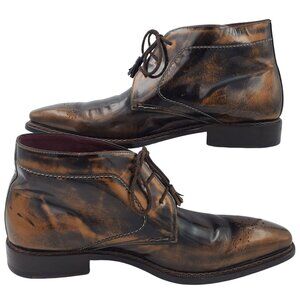Mezlan Spain Antiqued Brown Gloss Leather Chukka Boots Mens 12 Dress Ankle Shoes