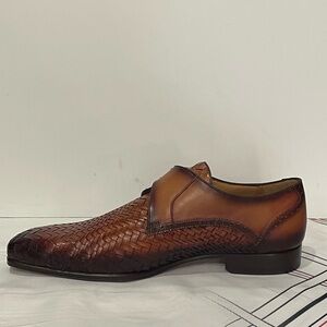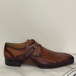 Mezlan shoe’s Cognac woven monk strap leather slip on