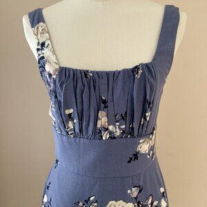Mi Ami Baby Doll Mini Dress Size XS Blue Floral Tiered Linen Blend Milkmaid
