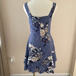 Mi Ami Baby Doll Mini Dress Womens XS Blue Floral Sleeveless Tiered Milkmaid