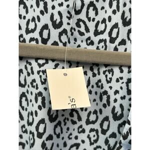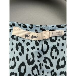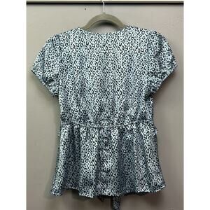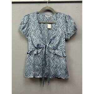 Mi Ami Blouse Womens Small Blue Leopard Print Short Sleeve Tie Front Ruffle Top