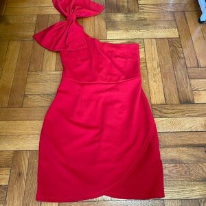 Mi Ami Elegant Scarlet Red One-Shoulder Dress - with Bow - Size M