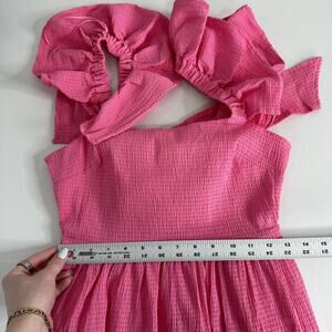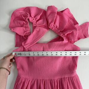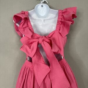 Mi Ami Francesca's Dress Womens Small Pink Ruffle Flutter Sleeve Open Back Prep