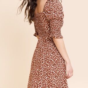 Mi Ami Mallorie Ditsy Floral Smocked Mini Brown Dress Boho Chic Women's L